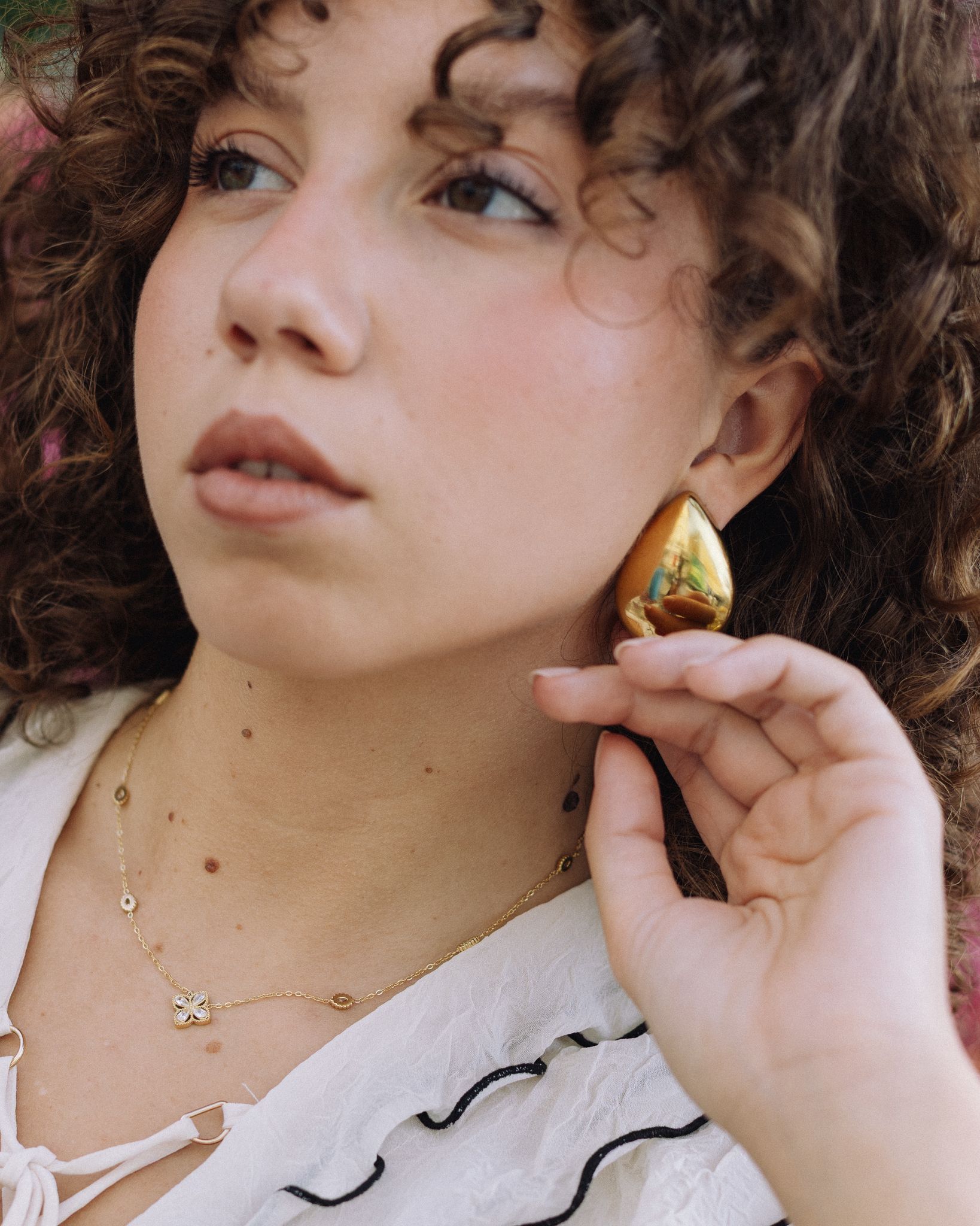 Os nossos Brincos Gota Alongada Dourados em aço inoxidável são a escolha perfeita para quem quer adicionar um toque sofisticado ao look. Com 14 cm de comprimento, são leves (apenas 14g) e super, confortáveis para usar o dia todo.